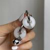 New Unique Green Jade Round Stainless Steel Hoop Earrings For Women Vintage Elegant Earclip Earrings Statement Jewelry