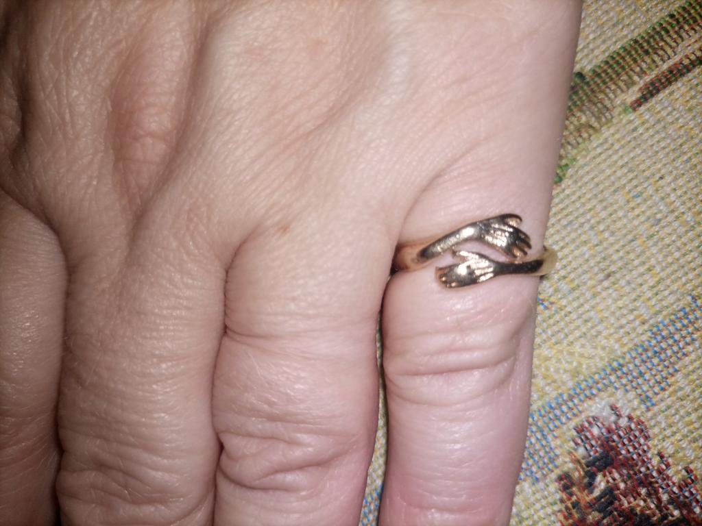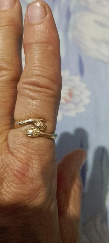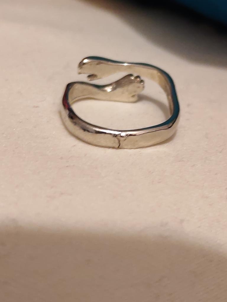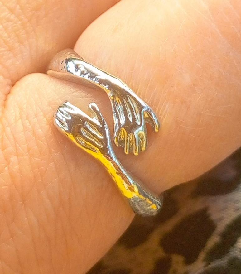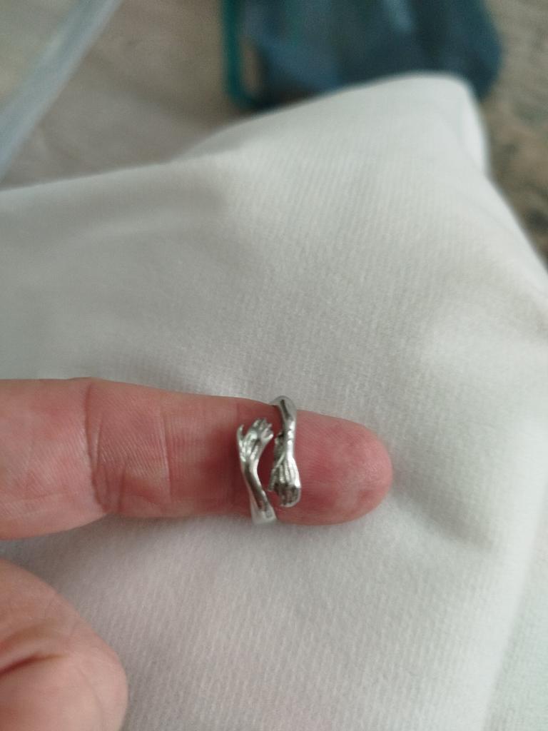 The silver paint has peeled off, but the ring has only benefited from this; now they are cute flesh-colored hands.