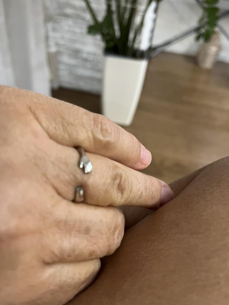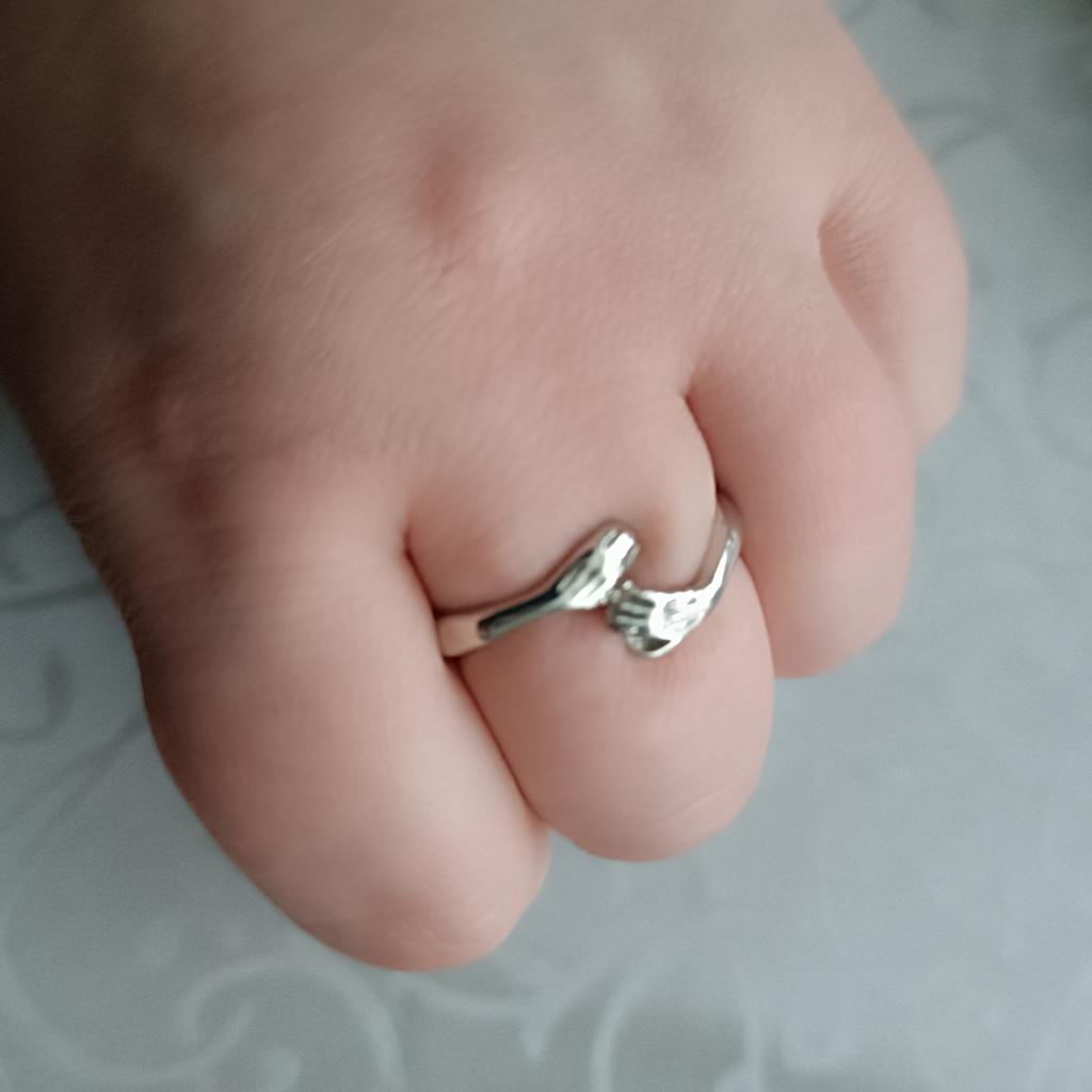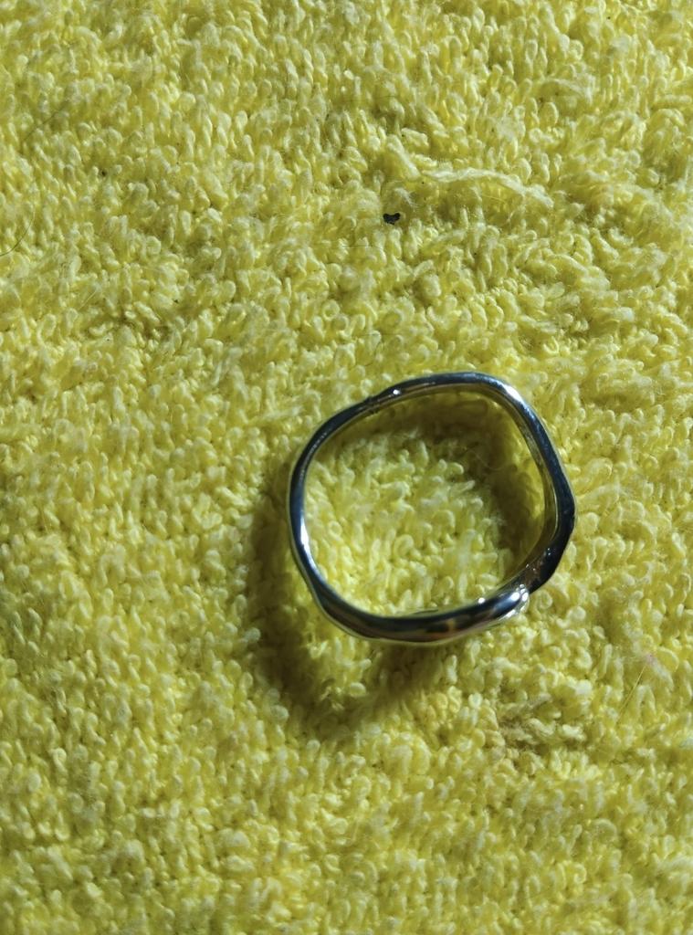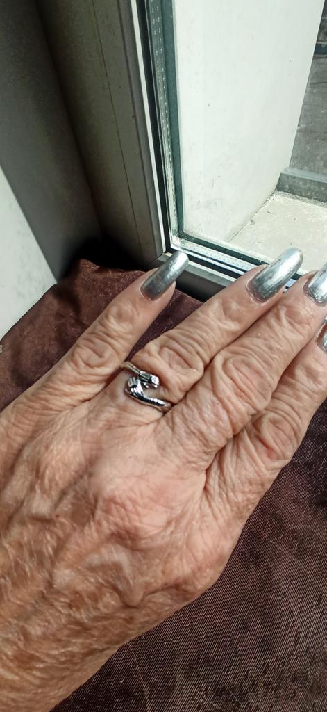 The silver paint has peeled off, but the ring has only benefited from this; now they are cute flesh-colored hands.