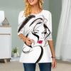 Plus Size Women Flower Face Recognition Print Round Neck Casual Loose Long Sleeve Top