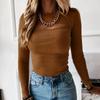 Spring or Autumn Women's Knitted T-shirts Long Sleeve Solid Color And Hollow Out Casual Slim O Neck Tee Tops