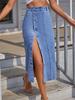 Sexy Streetwear Button Women Skirt Autumn Winter Elegant Denim Skirt Female High Waist Casual Bodycon Long Skirts