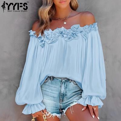 YYFS Women's Fashion Casual Spring Fall Solid Color Print Long Sleeve One Shoulder Blouses & Shirts