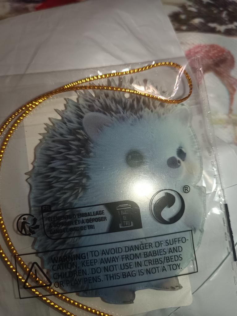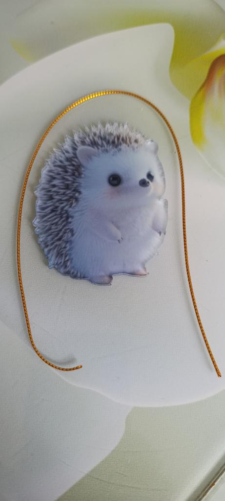 Very large hedgehog, a charmer on a golden ribbon. Flat two-sided