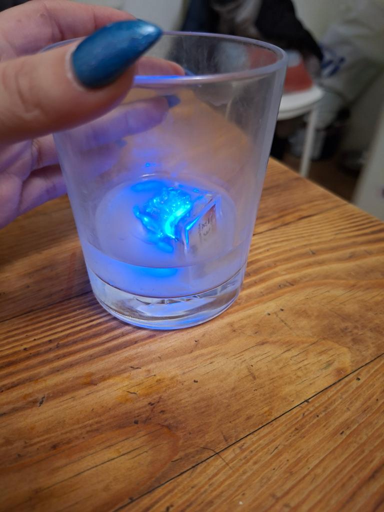 3 "ice cubes" glow when touched with water))) After a month they don't glow anymore(((