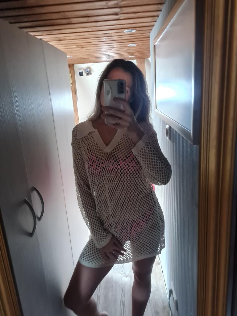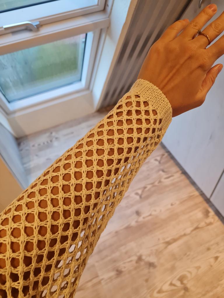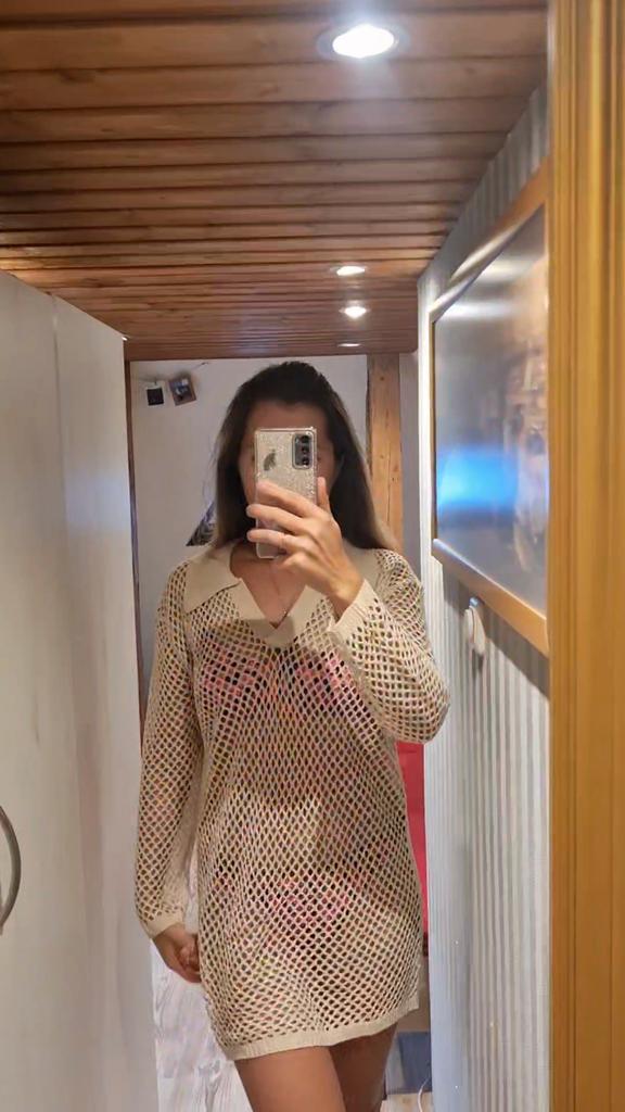 EDOLYNSA Solid Colour Beach Knit Mini Dress Women's Summer Sexy Hollow Out Long Sleeve Swimsuit Cover Up Boho Holiday Loose Beachwear K17