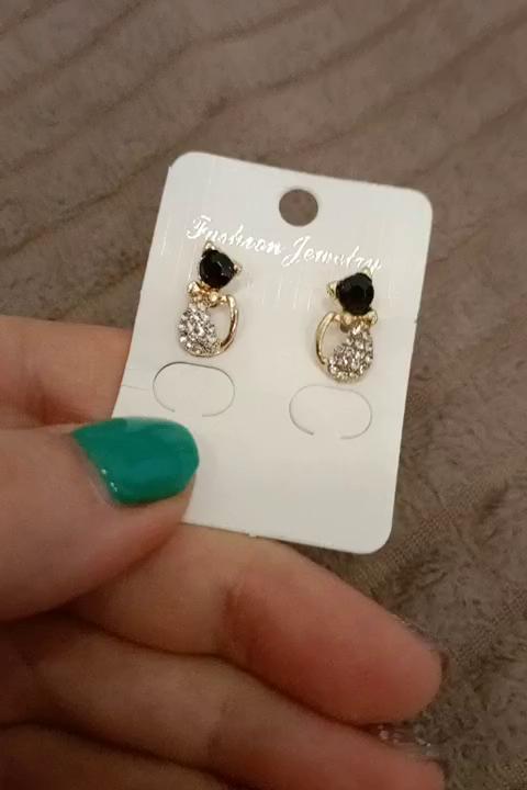 Elegant Women's Cute Cat Crystal Rhinestones Alloy Ear Studs Earrings Jewelry