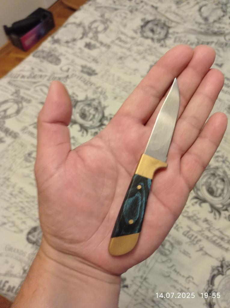 Blade length 7 cm. Handle length 8 cm. Total length of the knife 15 cm.
