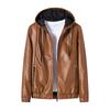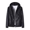 Fleece Men's Leather Jacket Leather Jacket Hooded Slim Fit Korean Version Locomotive Casual Jacket