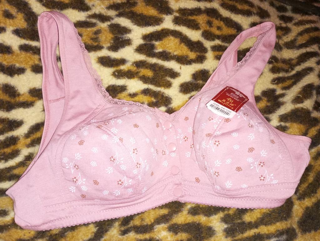 Cotton bra. Quite comfortable..But the model, how to say it..Not youthful in general..