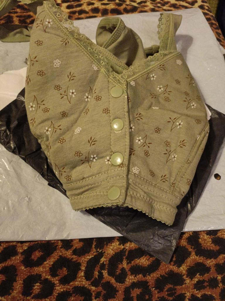 In the absence of a shortage of underwear, I order the third. I like it very much. 👍 Material, tailoring, quality ! I was tempted by the unusual color. Buttons in front, no underwire, which is what I wanted. Cotton.