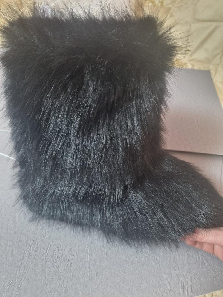 Women's Winter Snow Boots Outdoor Furry Faux Fox Fur Boots Plush Warm Platform Shoes Fashion Big Size