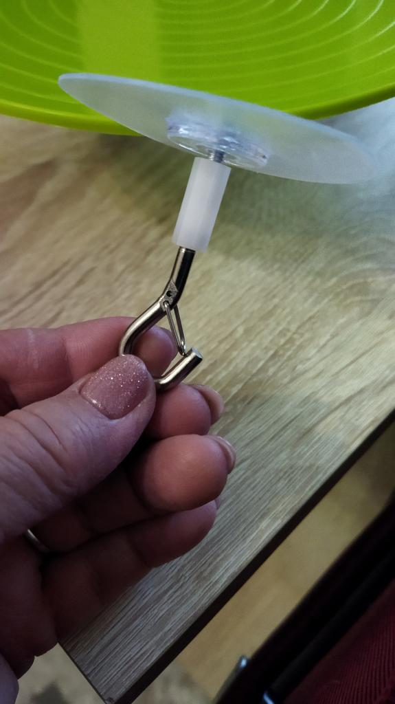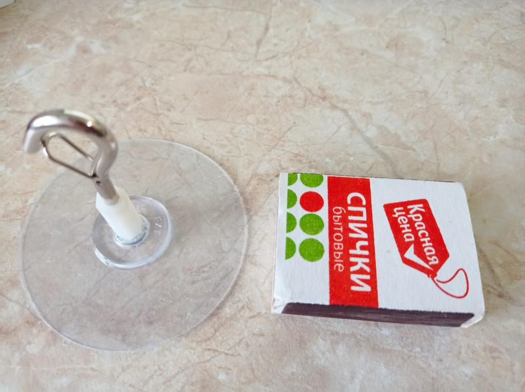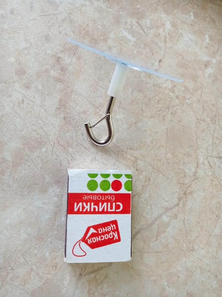 The hook is assembled, glued onto the sticky base of the plate. It can be stuck under a cabinet, above the sink, or in the pantry, in the basement in a narrow space.