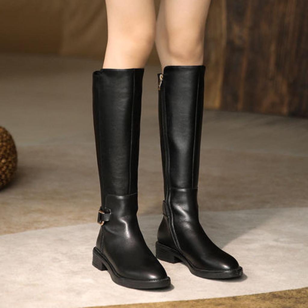 Women's Fashion Boots High Tube Boots Low Heel Motorcycle Boots Zipper Boots