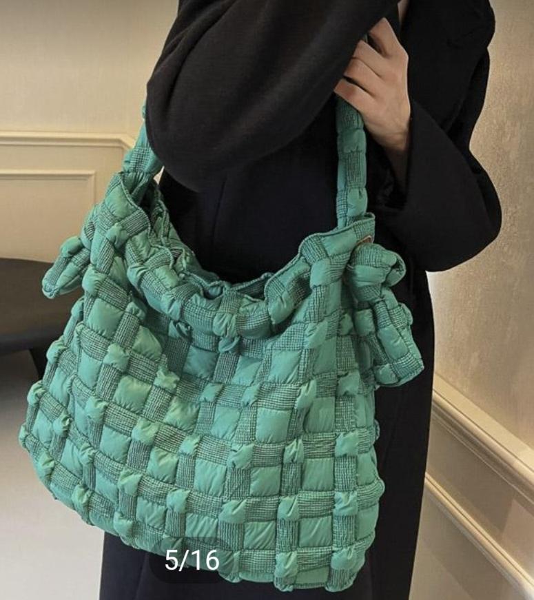 Autumn And Winter Large Capacity Folded Plaid Cloud Bag Lightweight Down Shoulder Bag Lady Messenger Light Weight Travel Crossbody Bags