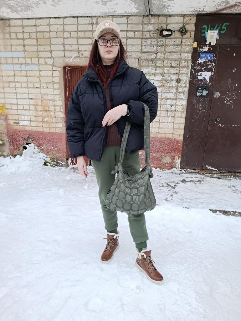 a bag with one handle, smaller than the one on the picture, made of raincoat fabric - I will wear it