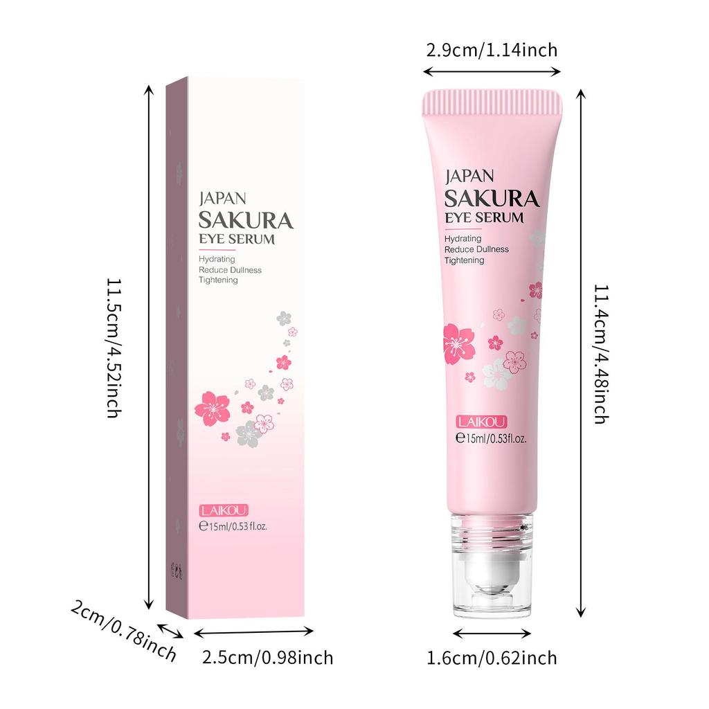 LAIKOU Sakura Eye Serum Anti Dark Circles Eye Cream Roller Massage Vitamin C Hyaluronic Acid Eye Bags Cream Moisturizing Skin Care