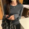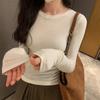 Simple Round Neck Tight Long-sleeved T-shirt Women's Autumn and Winter New Chic Soft and Waxy Versatile Slimming Bottoming Shirt Top