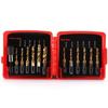 13-Piece Red Plastic Box Set of Metric, British, and American Hexagonal Handle Composite Taps for Drilling, Tapping, and Chamfering