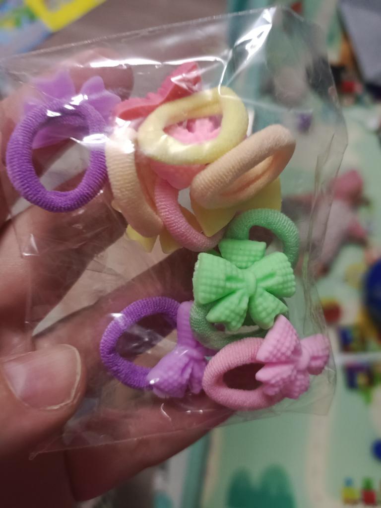 The rubber bands are small, about 1.5 cm, but bright and cute. Just right for a little girl.