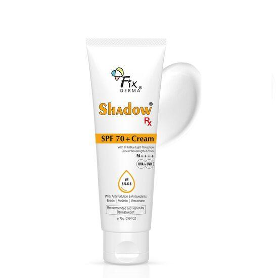 Fixderma Shadow RX Sunscreen SPF 70+ Cream PA++++ | Sunscreen for Dry Skin | Sunblock SPF 70 |IR Protection and Blue Light Protection - 75gm