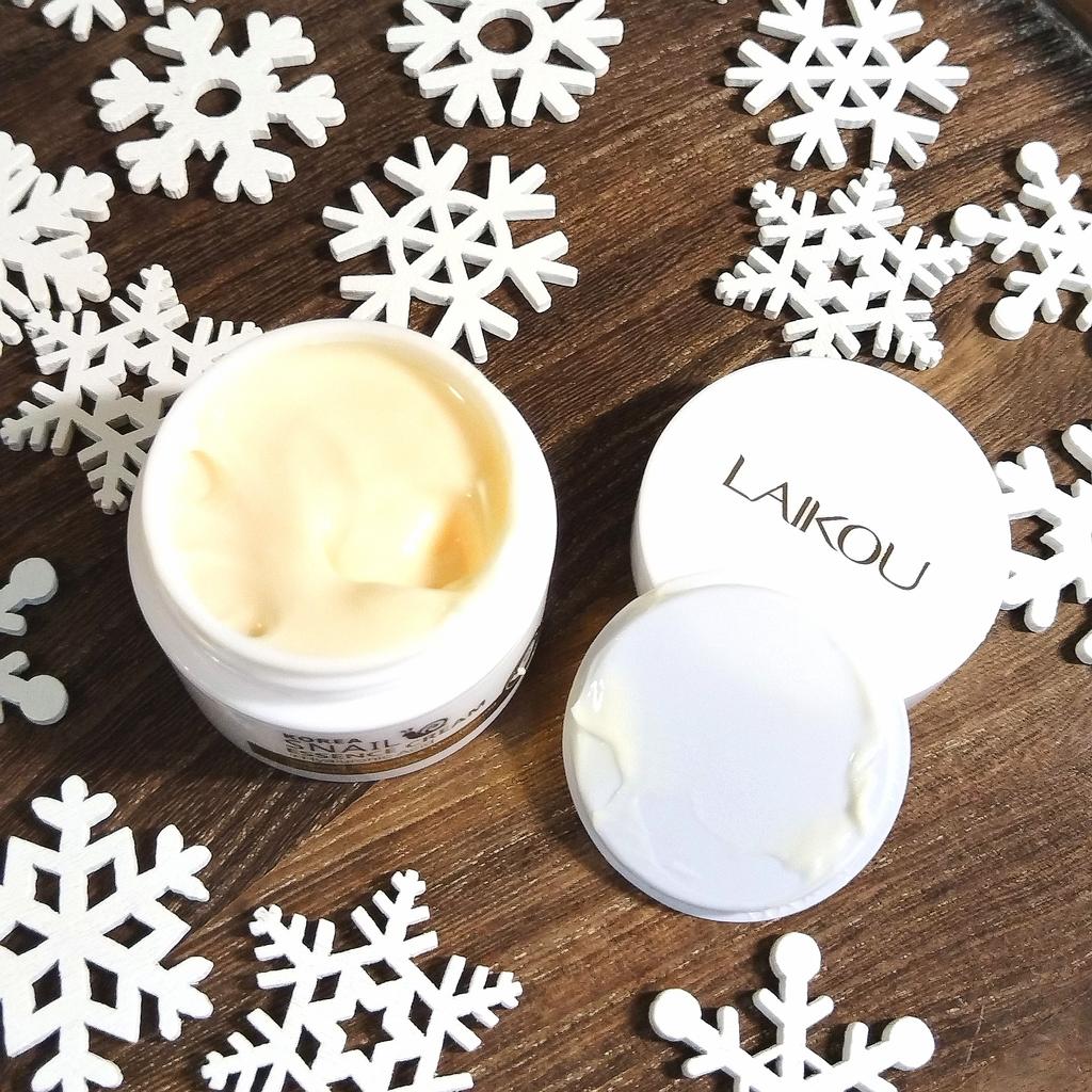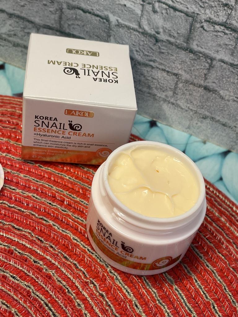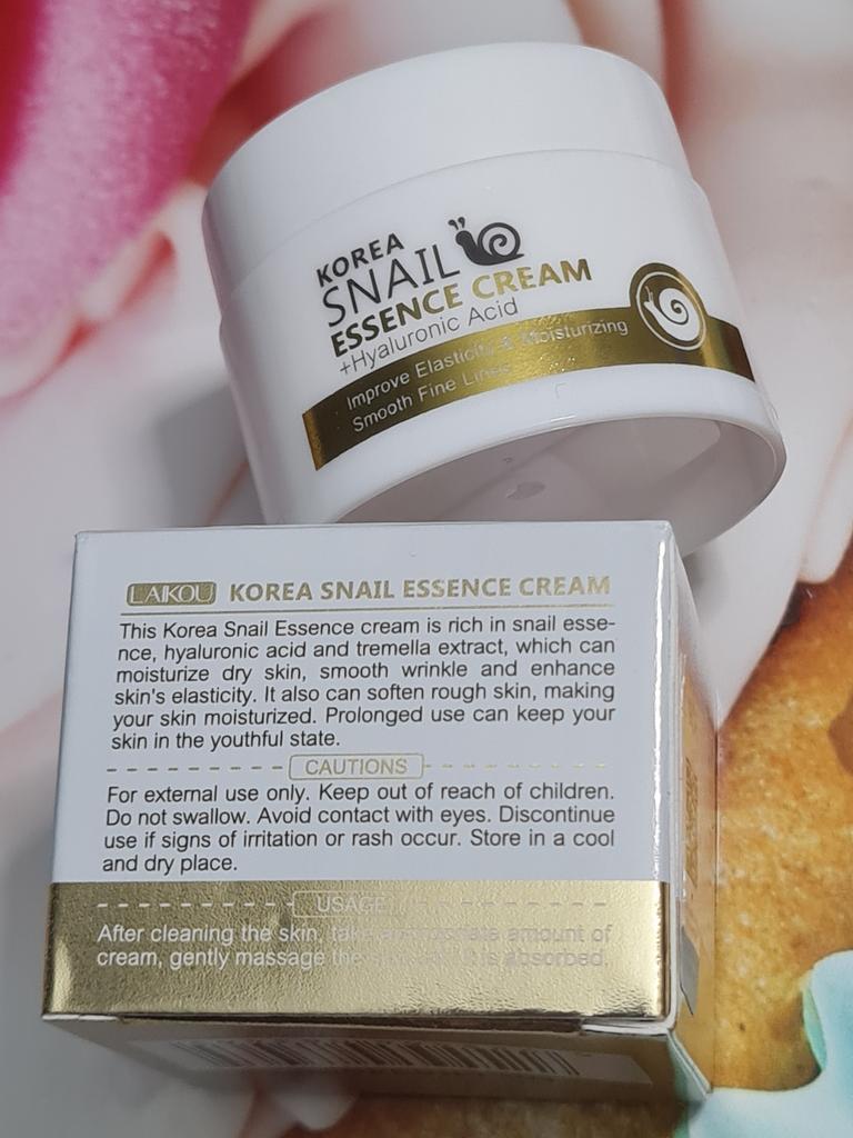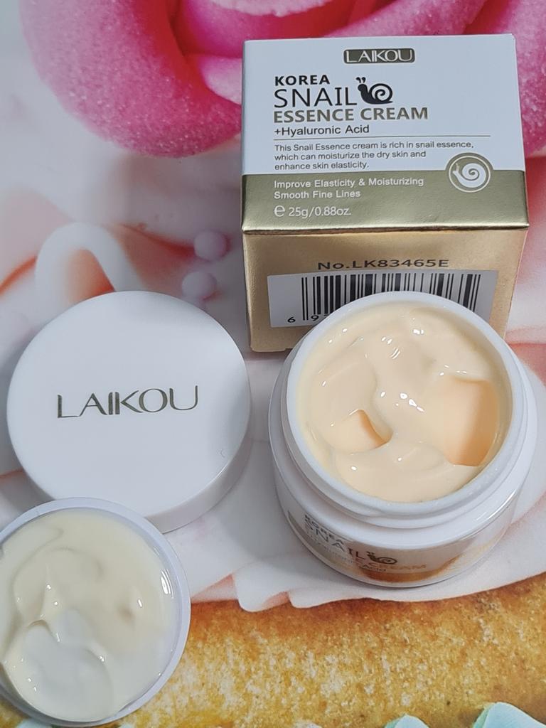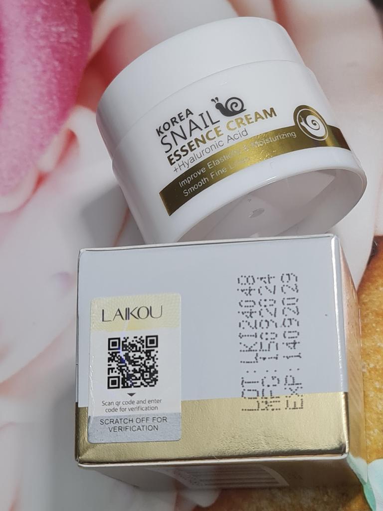 Face cream brand LAIKOU ❤️ Volume: 25 g Cream with hyaluronic acid 💧 and snail mucin 🐌. The cream is quickly absorbed by the skin without leaving a greasy or sticky feeling. After application, the skin becomes velvety, so soft and pleasant to the touch ☺️. The cream moisturizes and nourishes the skin well, smoothes fine wrinkles, and evens out microrelief.. The cream smells nice 🥰. In my opinion, it's a great cream, not for all the money in the world. I'm buying it not for the first time and not for the last time. I like it. I recommend it 🛍️. If the review was useful, put it as a favorite ❤️ I received the goods in 17 days in a combined parcel ✈️. The track was tracked completely. The arrival at the point of issue was announced by sms 📲. The packaging is very careful. The box with the cream is placed in a protective bubble capsule + bubble bag. The box is sealed in mica, all the necessary information is present. Expiration dates are indicated. Everything is great ☺️. Happy shopping and fast deliveries to everyone 🛍️☺️🚀🏵️ And remember that every woman is a star, so shine brighter 🌞 ❤️ PS: Need promo codes? Then be sure to visit my Telegram channel Olena.joom.thebest (t.me/olenajoom), where I regularly publish promo codes to make your purchases even more profitable 😘🛍️.