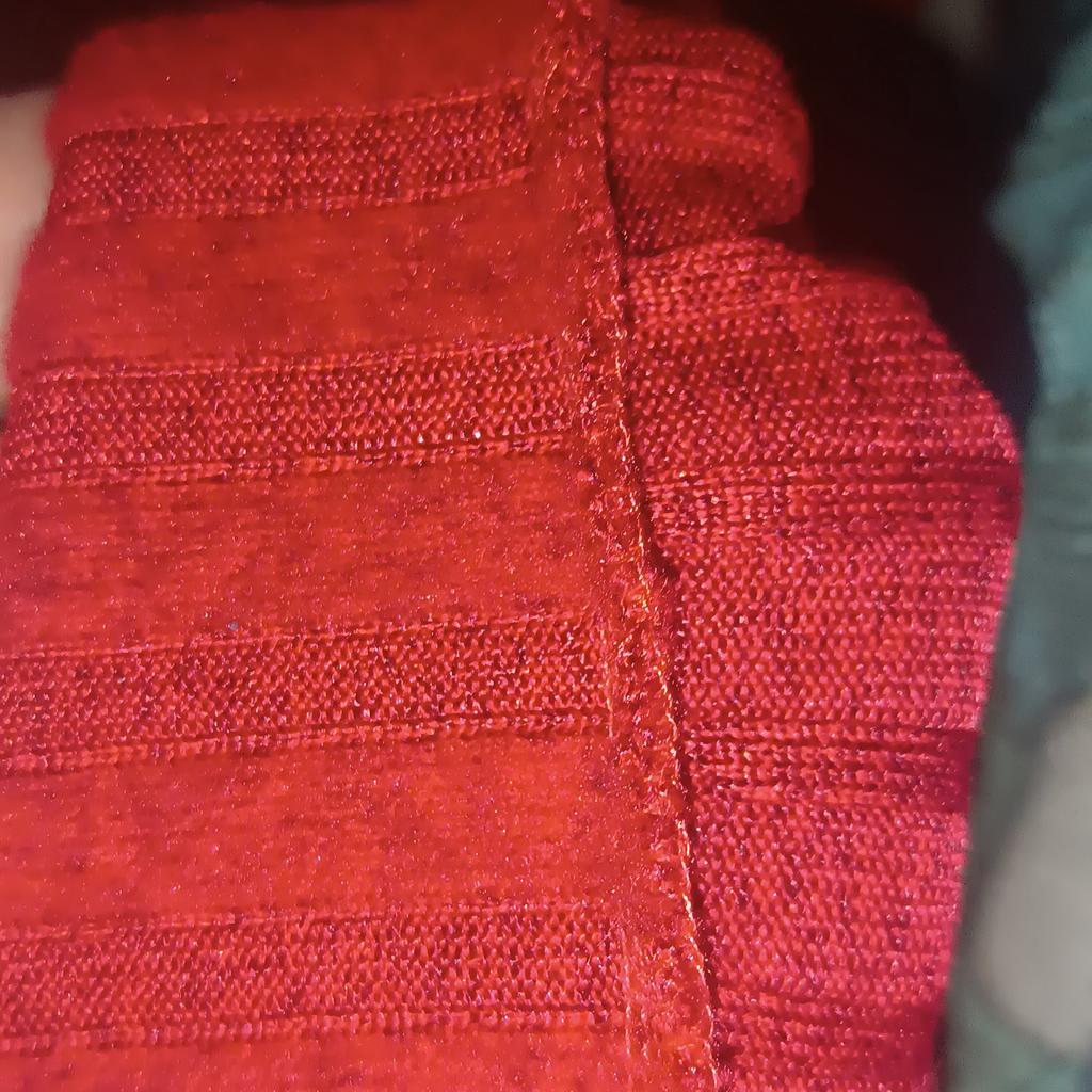 Runs very small, fits snugly. The color is not as pictured. In the photo, it's a completely different shade. This one is more "rusty". The texture is not like chenille, as it appeared in the photo.