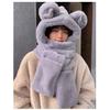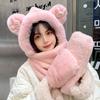 Winter Simple Thickened Warm Plush Scarf All-in-one Hooded Scarf Three-in-one Cute Bear Ear Hat Female Hooded Ski Mask