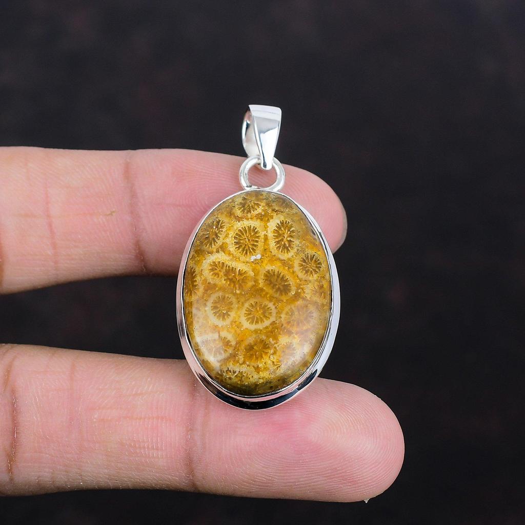 Fossil Coral Pendant Genuine Gemstone Pendant 925 Sterling Silver Pendant Designer Jewelry Handmade Pendant Gifts For Her Brand New Jewelry