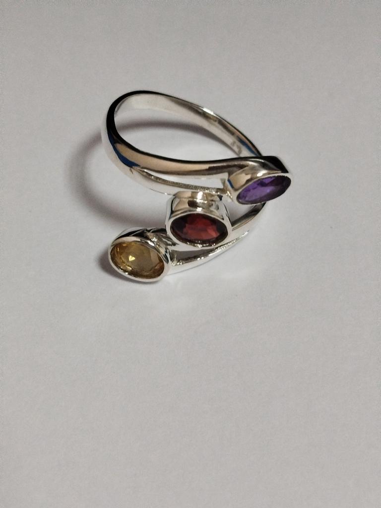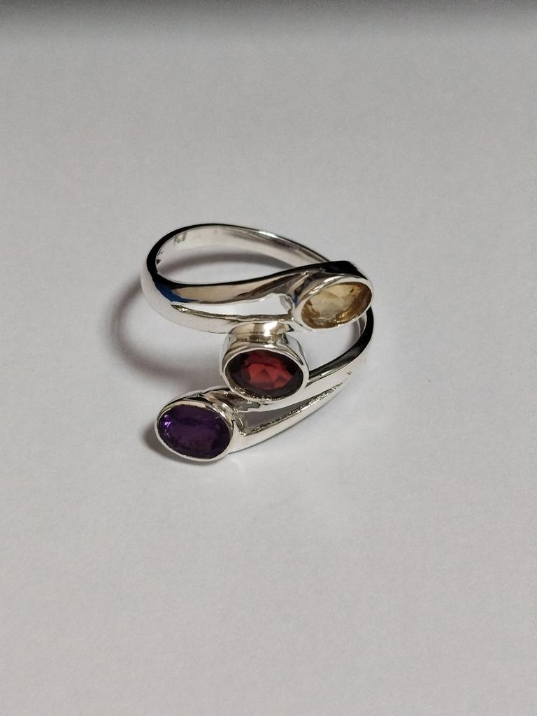 Arisha Silver Amethyst, Garnet, Citrine 925 Sterling Silver Ring