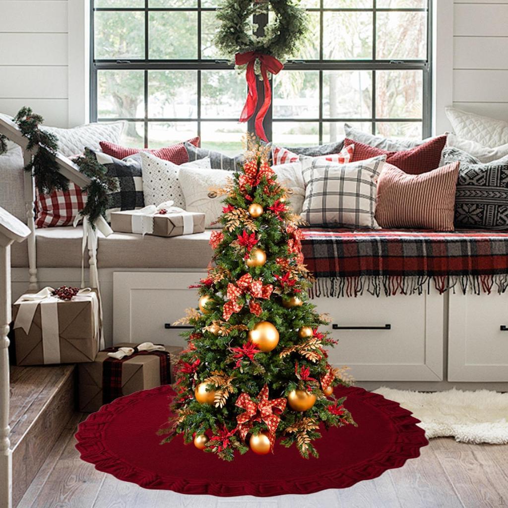 - 【Wide Application】: The Knitted Christmas Tree Skirt is an ideal decorative item for the home, indoor and outdoor, living room, bedroom, hotel, doorway, entrance, hall, porch, office, patio, and party or anywhere