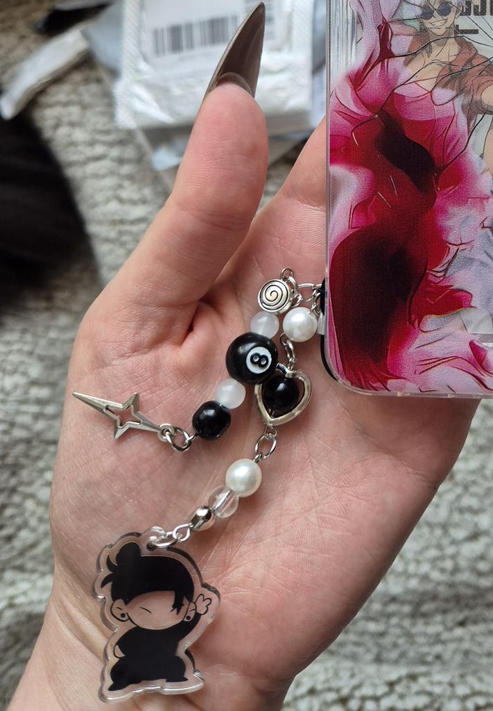 Creative Anime Gojo Geto Phone Lanyard Y2K Black Beaded Cross Phone Chain Mobile Phone Charm For Fan Gifts