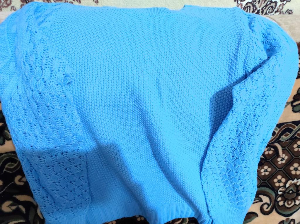 The sweater is warm, the color is duller than in the photo, the length is short, it doesn’t even reach the hip bones.