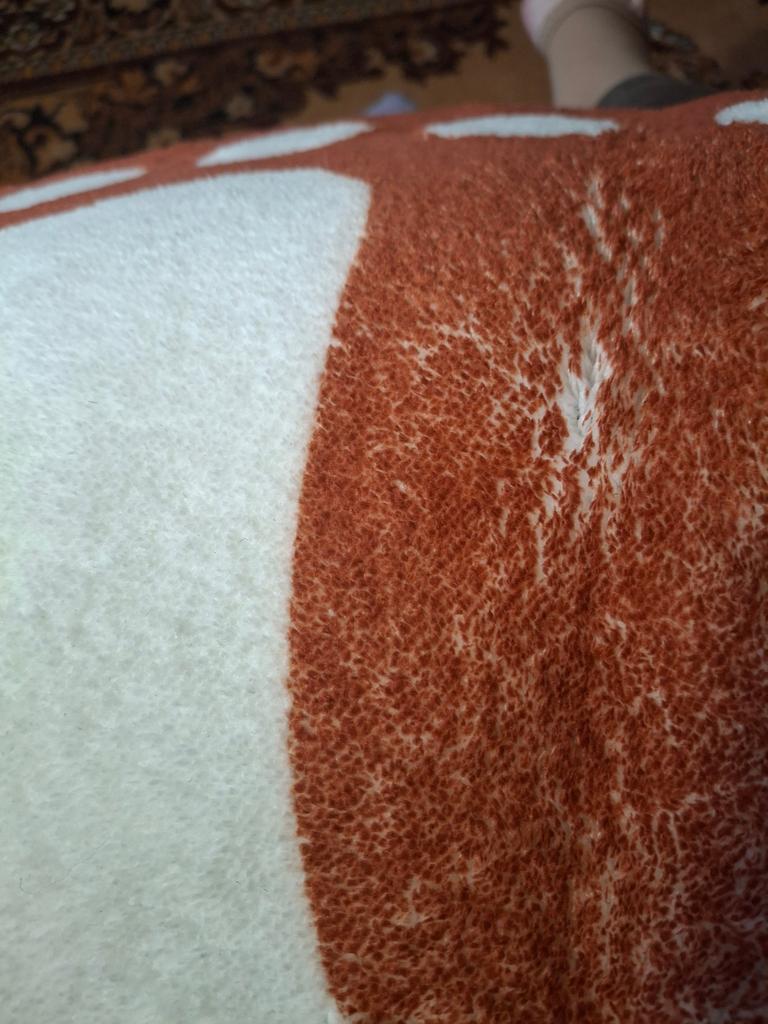 The product arrived on time, but the color is wrong and in places it looks like there wasn't enough paint. In addition, a tuft is also torn out.