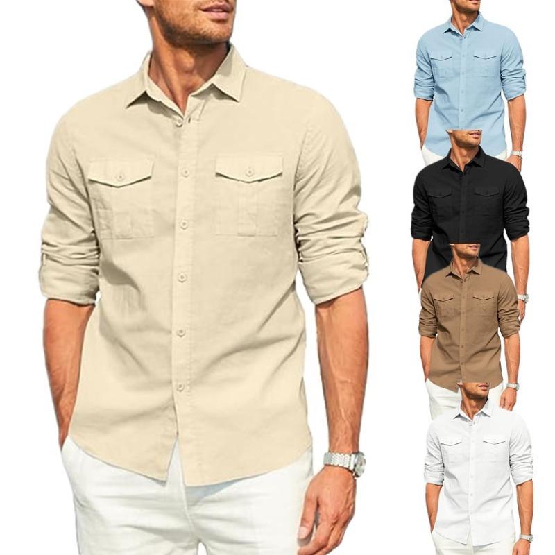 Men's Shirt Double Pocket Cotton Blends Long Sleeved Shirt Casual Vacation Shirts