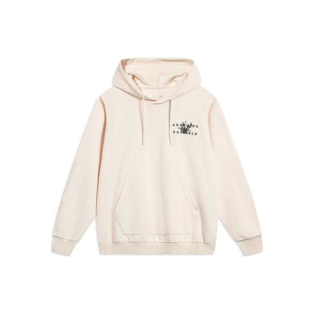 Li Ning Sports Lifestyle Series Letter Print Hooded Pullover Long Sleeve Sweatshirt Men Sweatshirt Swan-White AWDT393-1