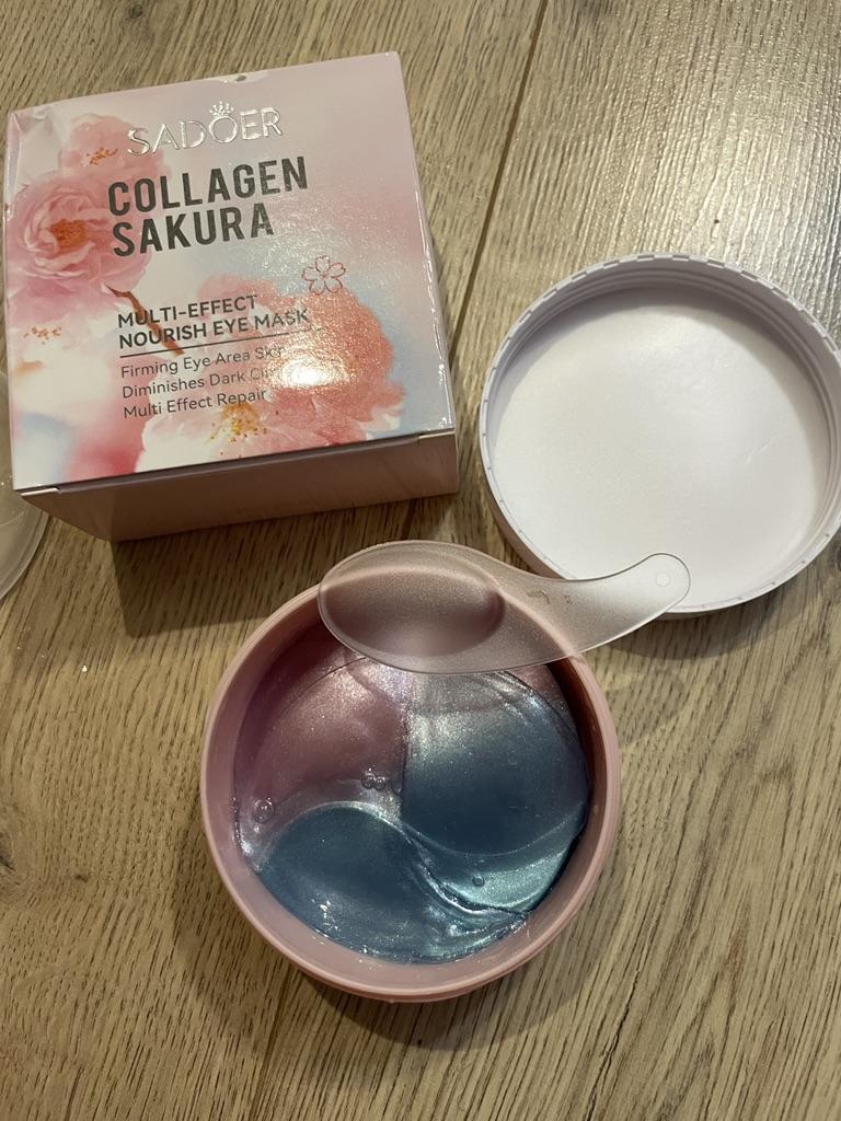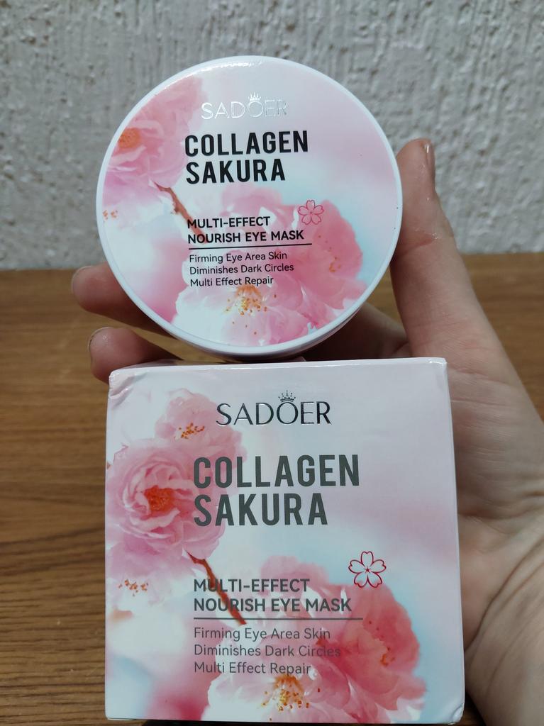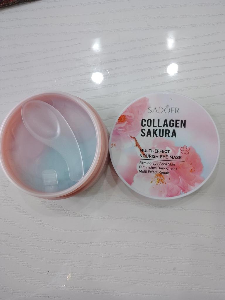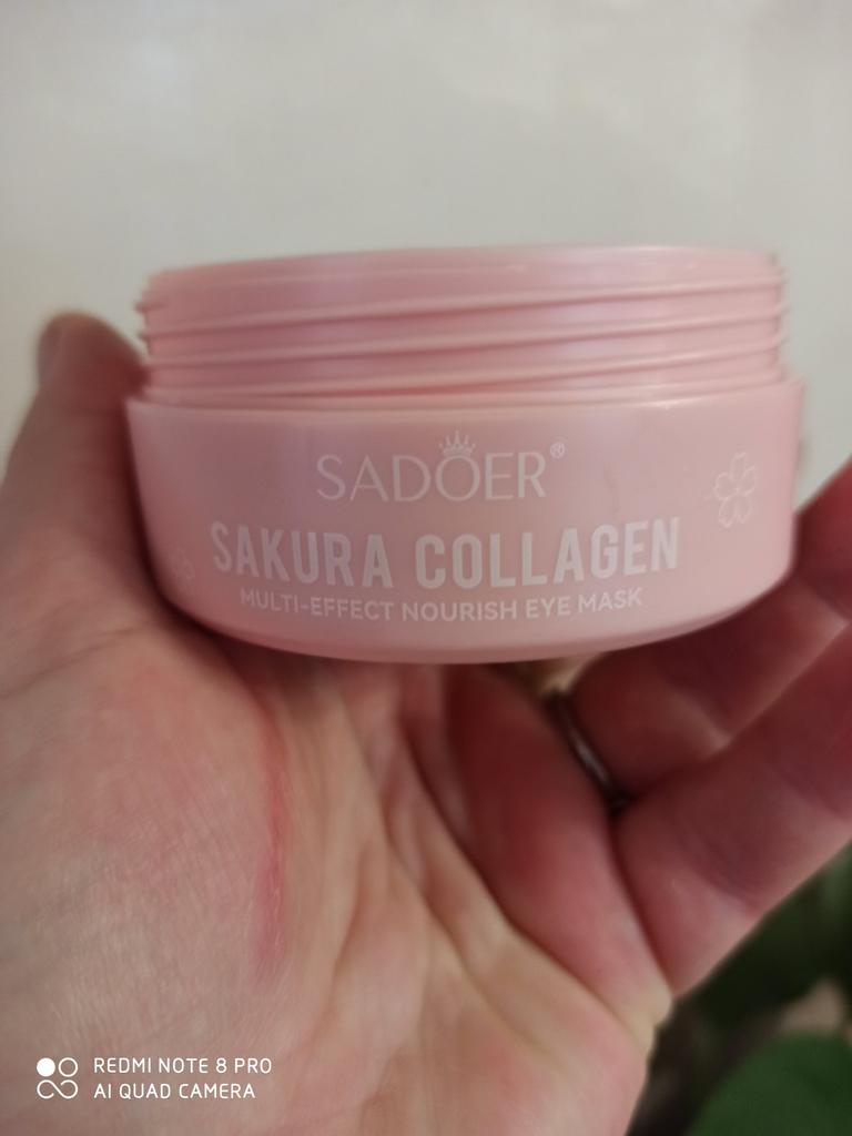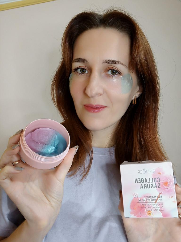 Patches for the skin around the eyes with collagen and sakura extract 🌸💖🌸 Sadoer brand 💖 60 pcs. The box and jar are decorated in delicate pink and blue colors. The jar has two membranes that protect the patches from leaking.. The set includes a convenient spoon. There is plenty of essence in the jar ☺️ The aroma is pleasant 🌸. The patches do an excellent job of their functions: they smooth out fine wrinkles, moisturize and tidy up the face in the morning.. How to use: apply the patches for 15-20 minutes, then remove and gently press the remaining essence into the skin with your fingertips.. That's all - enjoy the result ✨☺️✨ I liked the patches, I'm ordering again 🛍️👍🏻. If the review was useful, put it as a favorite ❤️ Received the product in two weeks. I ordered several products at the same time from the "Perfect skin" store, the seller put everything in one package, which is very convenient 📦☺️ The track was tracked completely. The arrival at the point of issue was announced by sms 📲. Packaging: air bubble bag. The box is sealed in mica, all the necessary information is present. Expiration dates are indicated. Happy shopping and fast deliveries to everyone 🛍️☺️🚀🌸 And remember that every woman is a star, so shine brighter 🌞 ❤️ PS: Need promo codes? Then be sure to visit my Telegram channel Olena.joom.thebest (t.me/olenajoom), where I regularly publish promo codes to make your purchases even more profitable 😘🛍️.