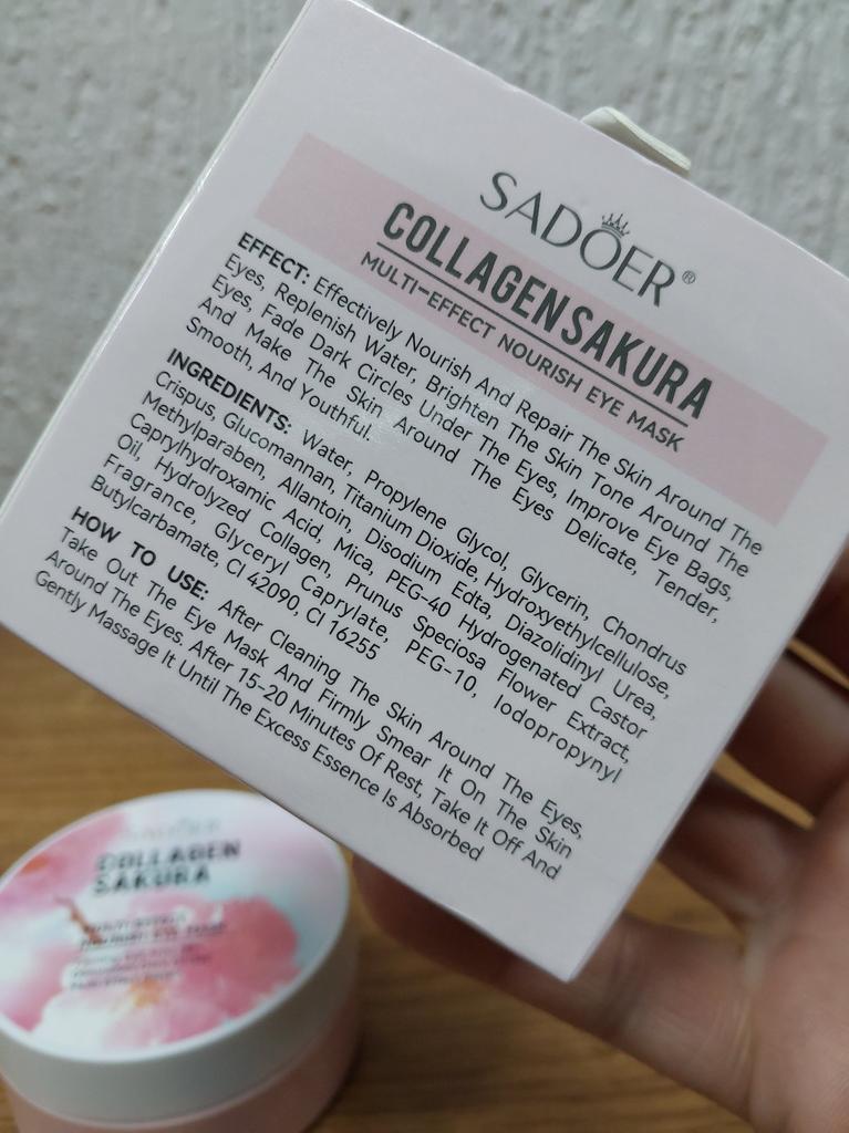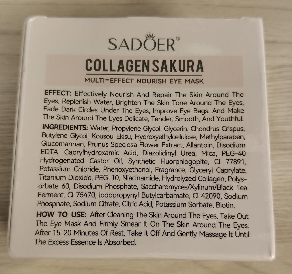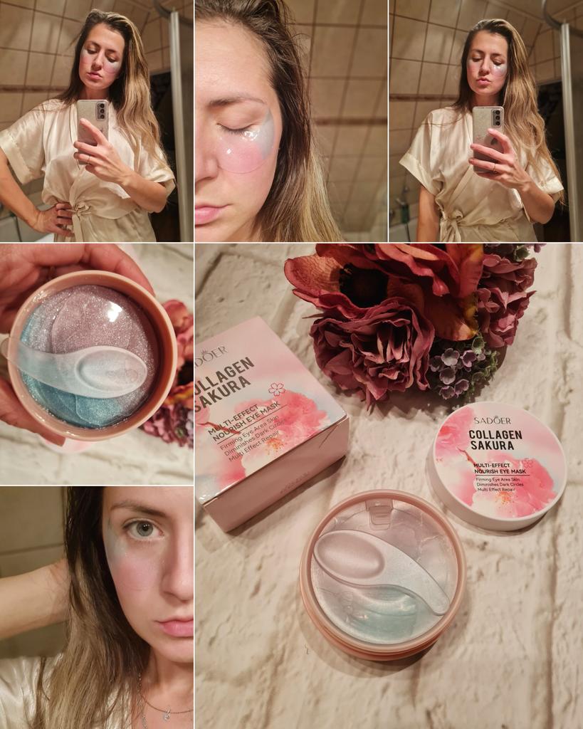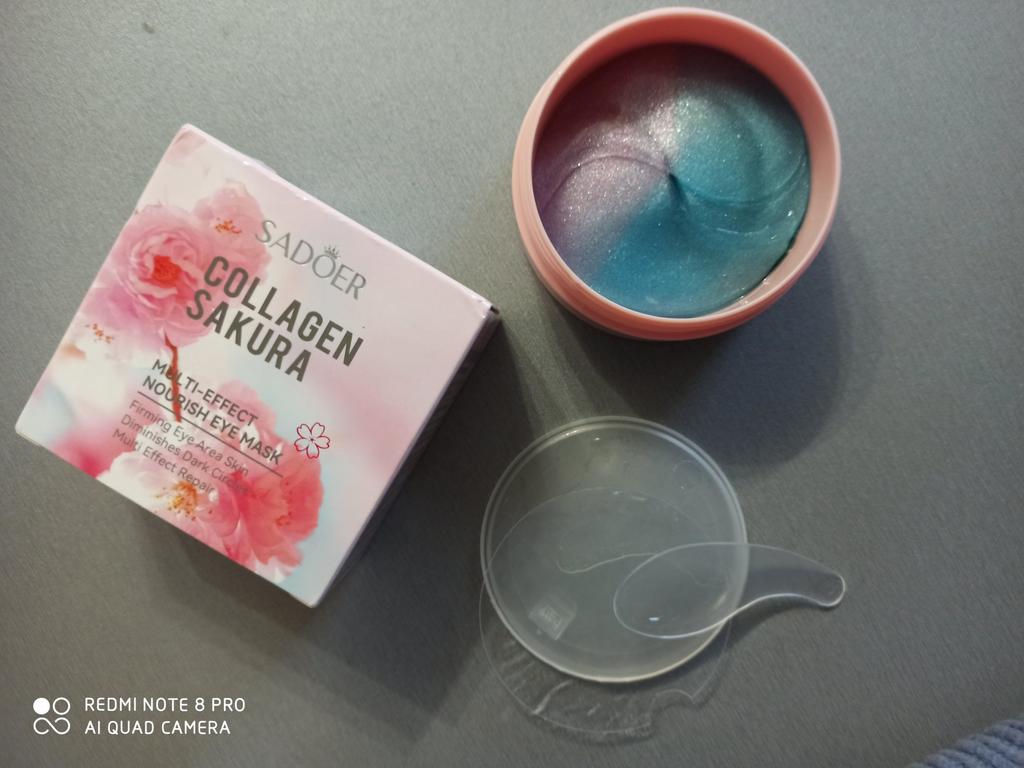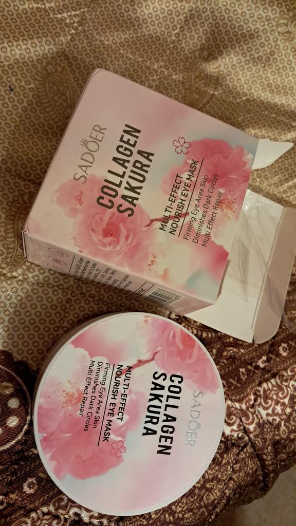 Patches for the skin around the eyes with collagen and sakura extract 🌸💖🌸 Sadoer brand 💖 60 pcs. The box and jar are decorated in delicate pink and blue colors. The jar has two membranes that protect the patches from leaking.. The set includes a convenient spoon. There is plenty of essence in the jar ☺️ The aroma is pleasant 🌸. The patches do an excellent job of their functions: they smooth out fine wrinkles, moisturize and tidy up the face in the morning.. How to use: apply the patches for 15-20 minutes, then remove and gently press the remaining essence into the skin with your fingertips.. That's all - enjoy the result ✨☺️✨ I liked the patches, I'm ordering again 🛍️👍🏻. If the review was useful, put it as a favorite ❤️ Received the product in two weeks. I ordered several products at the same time from the "Perfect skin" store, the seller put everything in one package, which is very convenient 📦☺️ The track was tracked completely. The arrival at the point of issue was announced by sms 📲. Packaging: air bubble bag. The box is sealed in mica, all the necessary information is present. Expiration dates are indicated. Happy shopping and fast deliveries to everyone 🛍️☺️🚀🌸 And remember that every woman is a star, so shine brighter 🌞 ❤️ PS: Need promo codes? Then be sure to visit my Telegram channel Olena.joom.thebest (t.me/olenajoom), where I regularly publish promo codes to make your purchases even more profitable 😘🛍️.