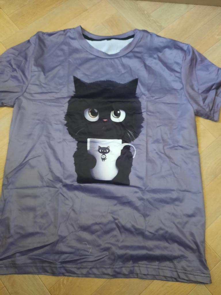A Cute Black Cat Holding A Cup Print T-Shirt Breathable Skin Friendly Short Sleeve Harajuku Trendy Clothes Comfy Soft T-Shirt