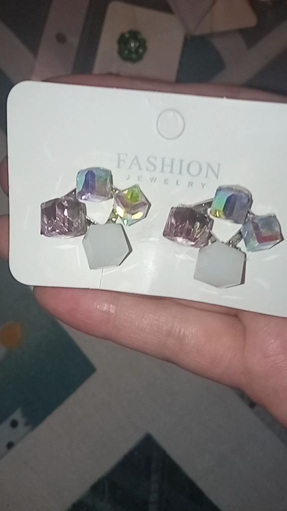 1PC Fantastic Colorful Crystal Geometric Square Earrings for Women Girls Different Angles and Colors Unusual Design Jewelry