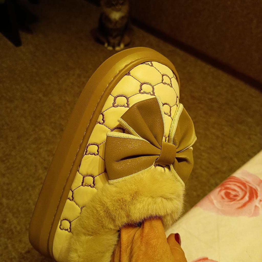 One slipper is normal, the other is creased, although they were packaged well, i.e. they packaged it already creased. Does not correspond to the size. I wear 38, ordered 38-39, barely pulled it on, whoever will order, needs 2 sizes larger for comfort