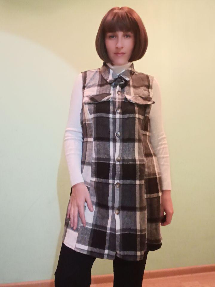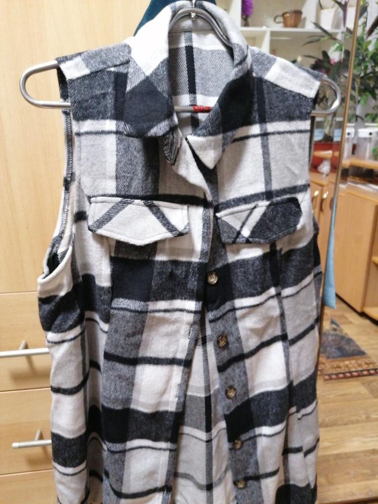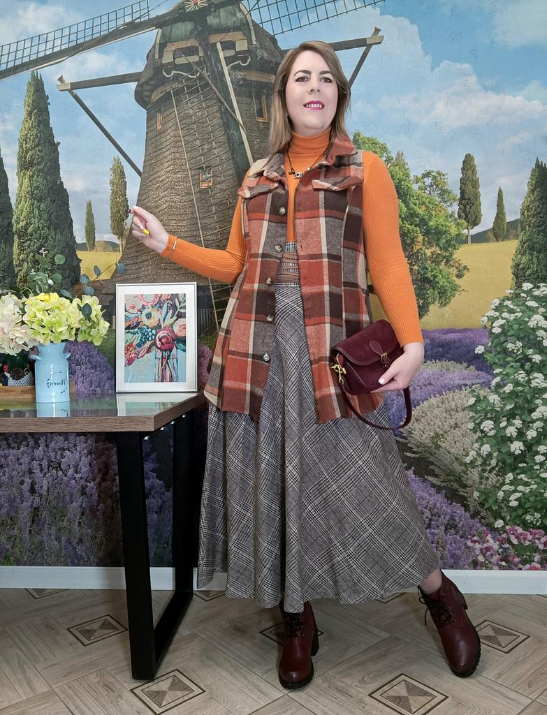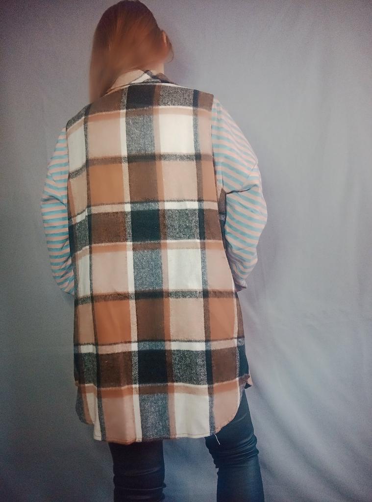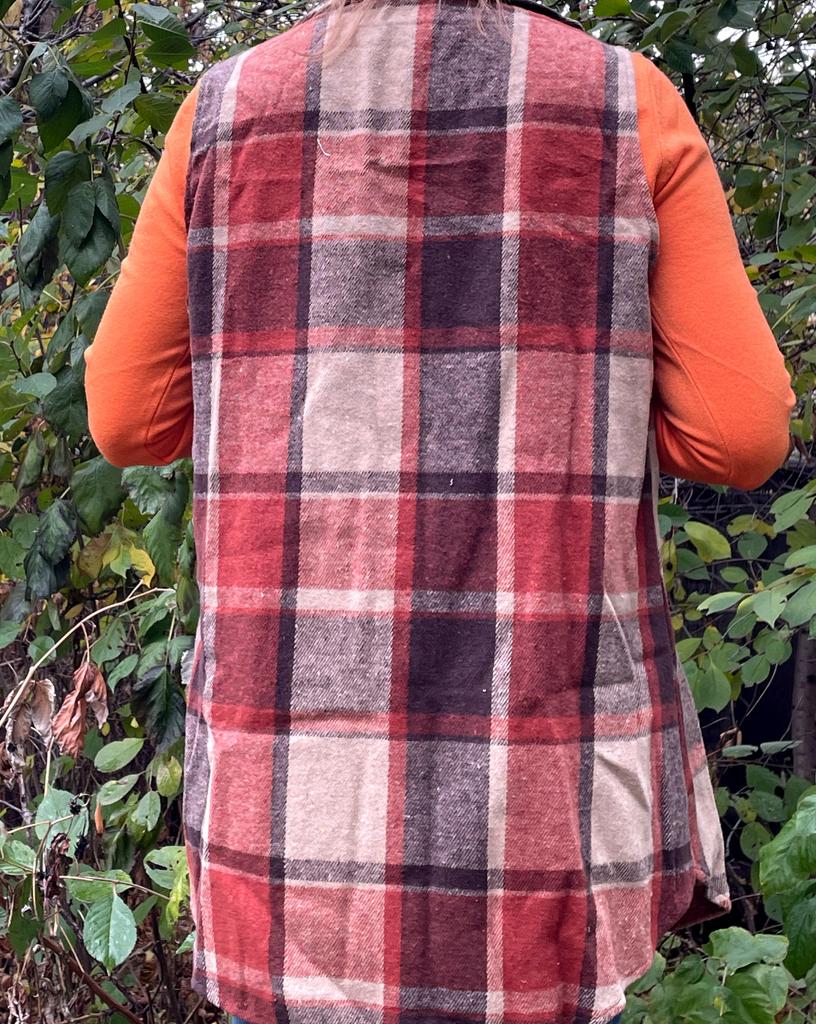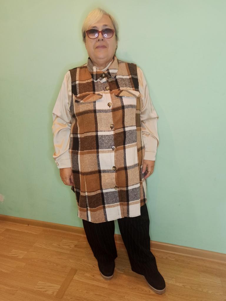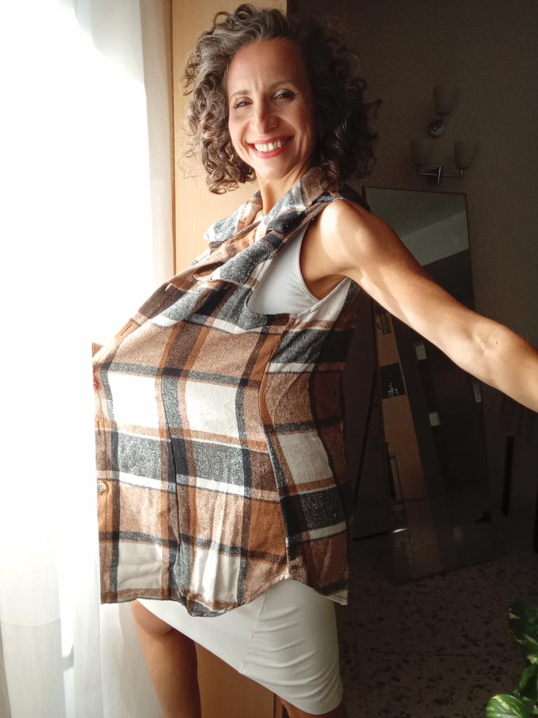 This loose-fitting tweed plaid shirt offers a unique combination of comfort, style, and everyday elegance. It's a garment that exudes a fashionable yet effortless winter-autumn vibe, with a nod to minimalist Japanese-Korean style. It's especially suitable for women who prefer a chic but relaxed look, with a subtle yet clear presence.. The sleeveless design allows for layering flexibility – it can be combined over a thin shirt, a turtleneck, or even a light sweater to create a more sophisticated look. The shirt-style collar and the many buttons down the front add a classic touch, which echoes traditional tweed style but remains updated. The fabric is made of 100% polyester, which makes the item durable, pleasant on the body, and easy to maintain – it can be hand washed. The bra comes in an exceptionally loose and comfortable cut, making it ideal for plus-size women who want to enjoy both fashion and comfort.. In summary, this is a fashionable, versatile, and sophisticated item that enriches any seasonal wardrobe. Perfect for a day at the office, an outing in the city, or simply as a warm and stylish addition to an everyday outfit.