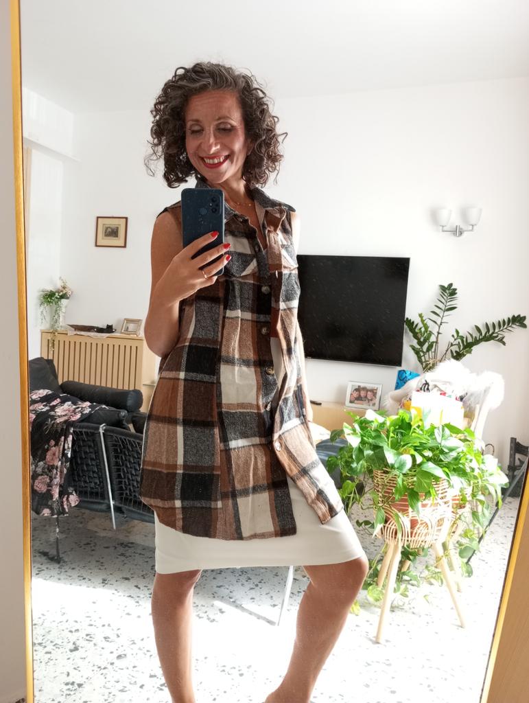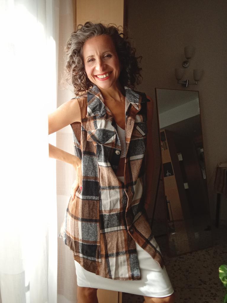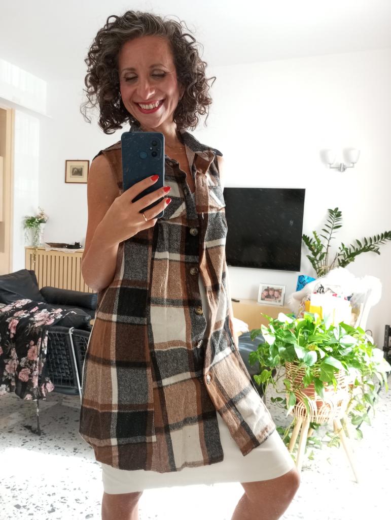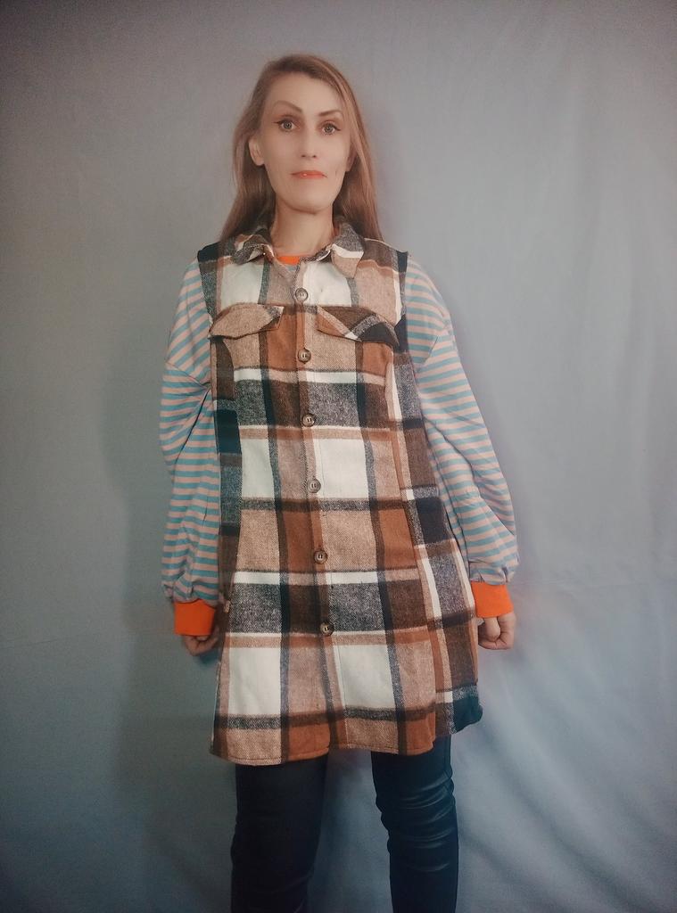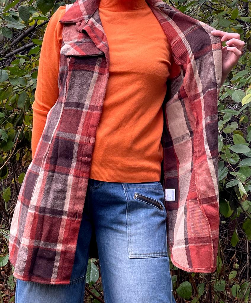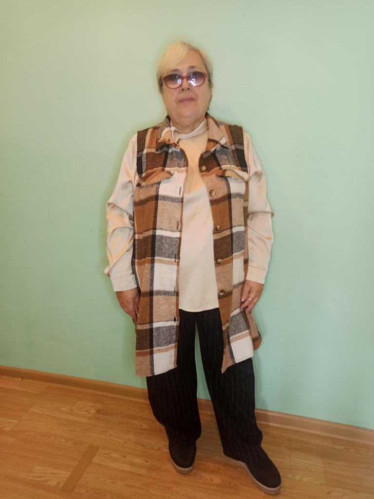 This loose-fitting tweed plaid shirt offers a unique combination of comfort, style, and everyday elegance. It's a garment that exudes a fashionable yet effortless winter-autumn vibe, with a nod to minimalist Japanese-Korean style. It's especially suitable for women who prefer a chic but relaxed look, with a subtle yet clear presence.. The sleeveless design allows for layering flexibility – it can be combined over a thin shirt, a turtleneck, or even a light sweater to create a more sophisticated look. The shirt-style collar and the many buttons down the front add a classic touch, which echoes traditional tweed style but remains updated. The fabric is made of 100% polyester, which makes the item durable, pleasant on the body, and easy to maintain – it can be hand washed. The bra comes in an exceptionally loose and comfortable cut, making it ideal for plus-size women who want to enjoy both fashion and comfort.. In summary, this is a fashionable, versatile, and sophisticated item that enriches any seasonal wardrobe. Perfect for a day at the office, an outing in the city, or simply as a warm and stylish addition to an everyday outfit.