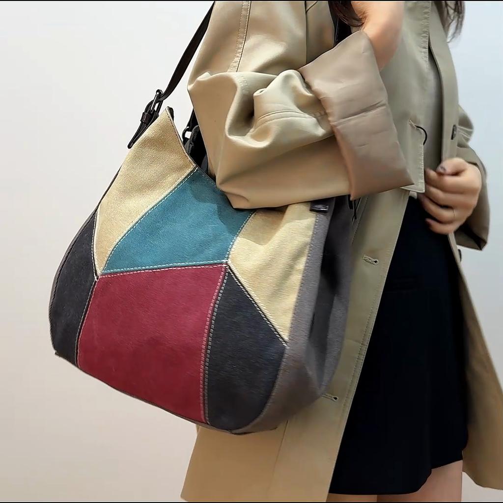 Women's Shoulder Bag Large Capacity Tote Bag Contrast Color Stitching Canvas Bag