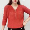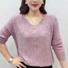 Women's Autumn Sweater Long Sleeve Knit V-Neck Pullover Loose Thin Sweater Top