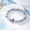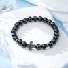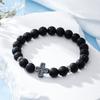 Fashion Religion Cross Men Women 8mm Natural Stone Tiger Eye Volcanic Rock Bead Bracelet Elastic Bracelet Bangle Jewelry