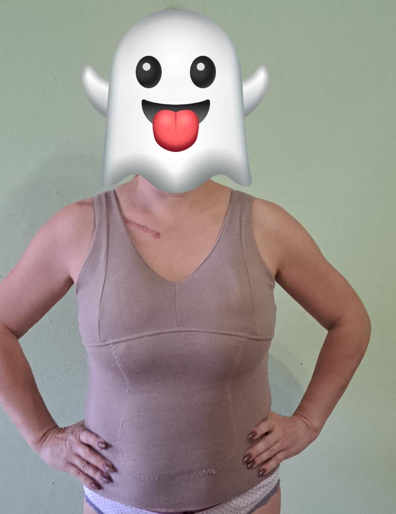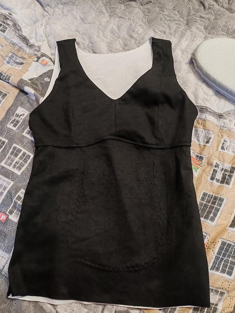 Interesting tank top. Well, it seems like the fabric is pleasant, soft, and everything is sewn neatly, evenly but... But, damn, it's short!!! Warm top!!!