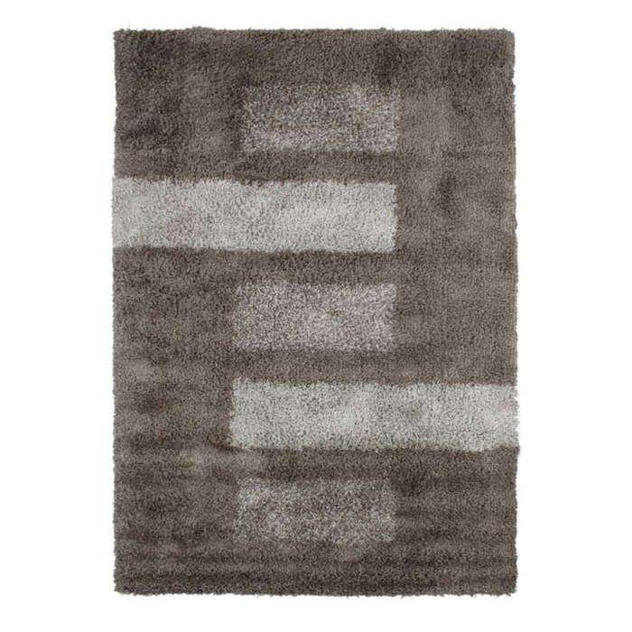 Grey Rectangles Pattern Long Pile Rug 120x170