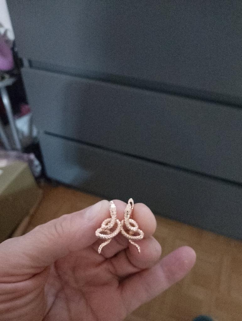 My daughter liked the small, pretty earrings, 👍😉 Imitation gold looks very nice and festive🤩. They came well packed in a bag and a plastic box. Thank you to the seller and Juma 😉