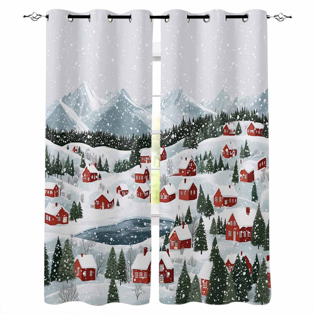 Christmas And Winter Snowflake Town Blackout Curtains For Living Room Bedroom Window Treatment Blinds Drapes Kitchen Curtains